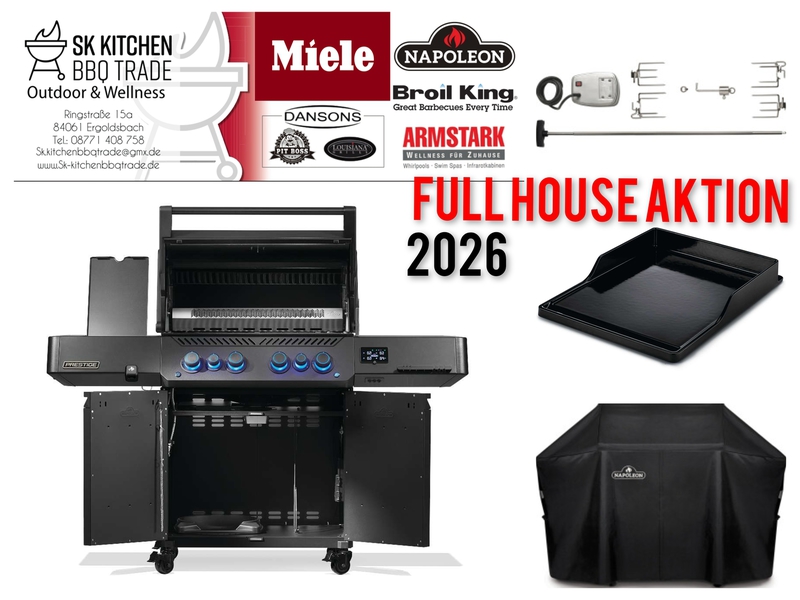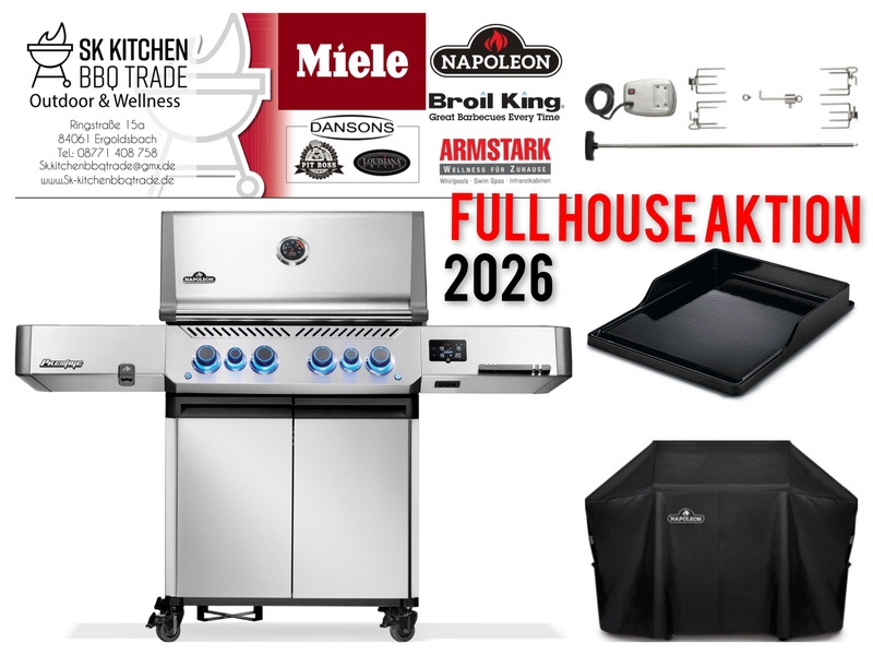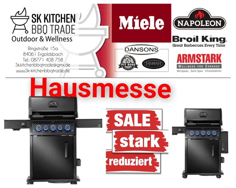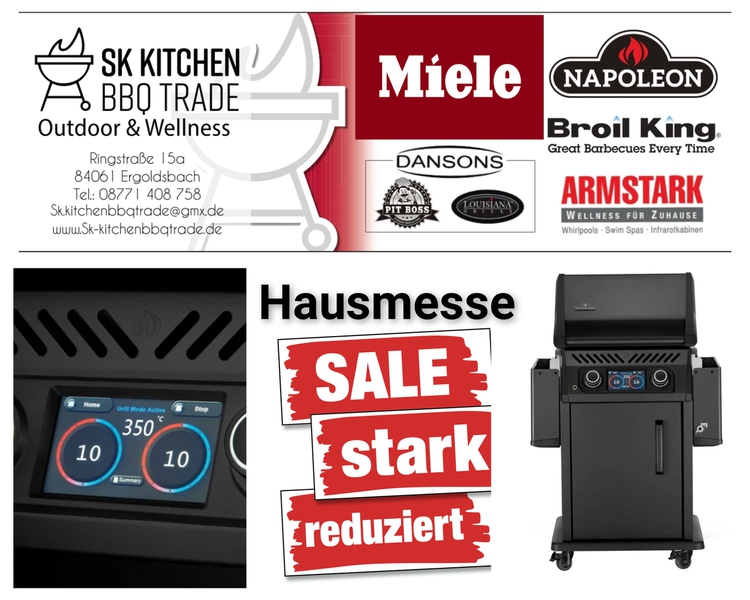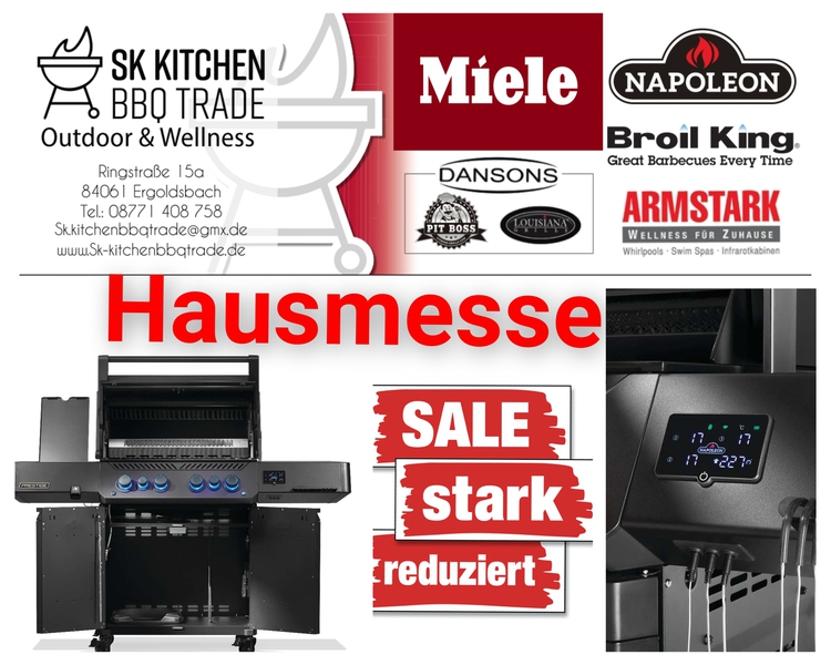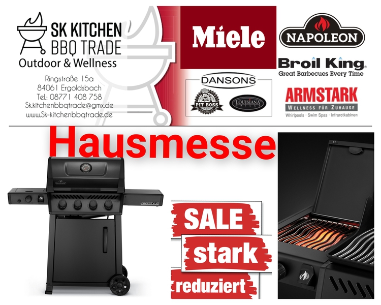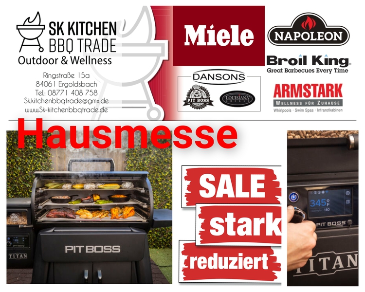 Wir führen eine sehr erfolgreiche BBQ Schule, die Kochschule-ff- dabei verwenden wir Gasgrills von Otto Wilde Miele Outdoorküchen, Broil King, Napoleon Gourmet Grills. Auch Pellet Smoker von Louisiana und Pit Boss gehören zu unserem Sortiment.